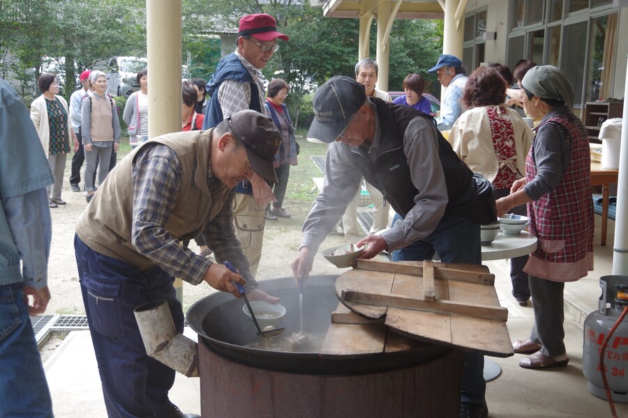 旧上西中学校跡で、塩江町保健所職員の呼びかけで「男性料理教室開始」