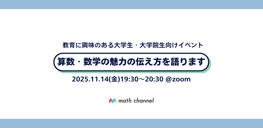 - 11/14開催【教育に興味のある大学生向け】算数・数学の魅力の伝え方を語ります!