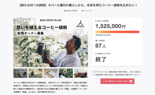 ※植樹割は、2021年〜2025年のBIKAS COFFEE VILLAGEで植樹プランを購入いただいた方が対象