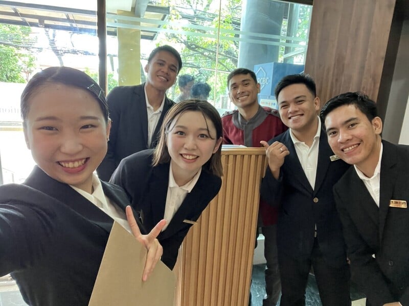 勤務先のホテルは、現地のフィリピン人スタッフと、フィリピンの大学生もインターンに参加して今る。