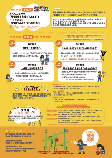 ・参加者・協力者間の交流や、“止まり木”となりうる京都市北青少年活動センターの見学を行います。(自由参加)