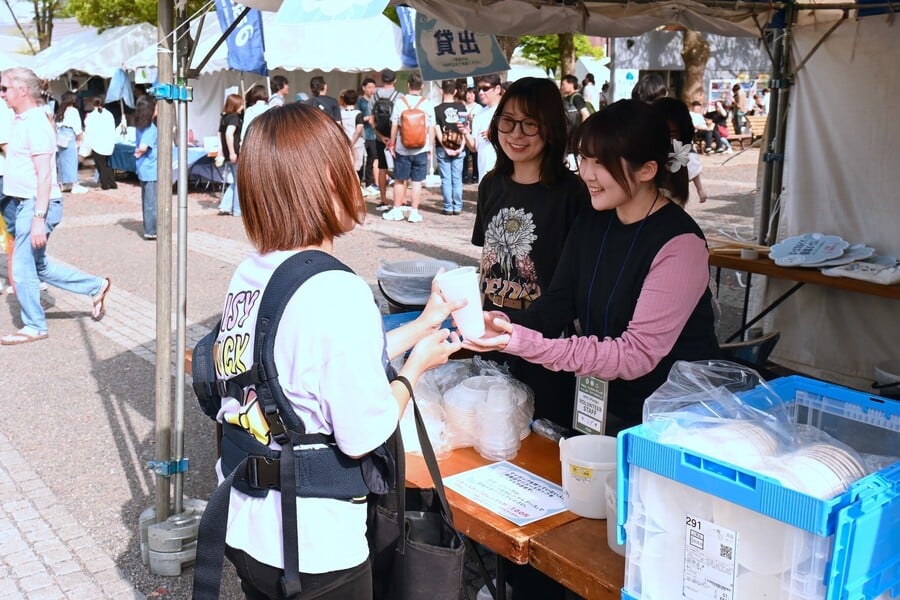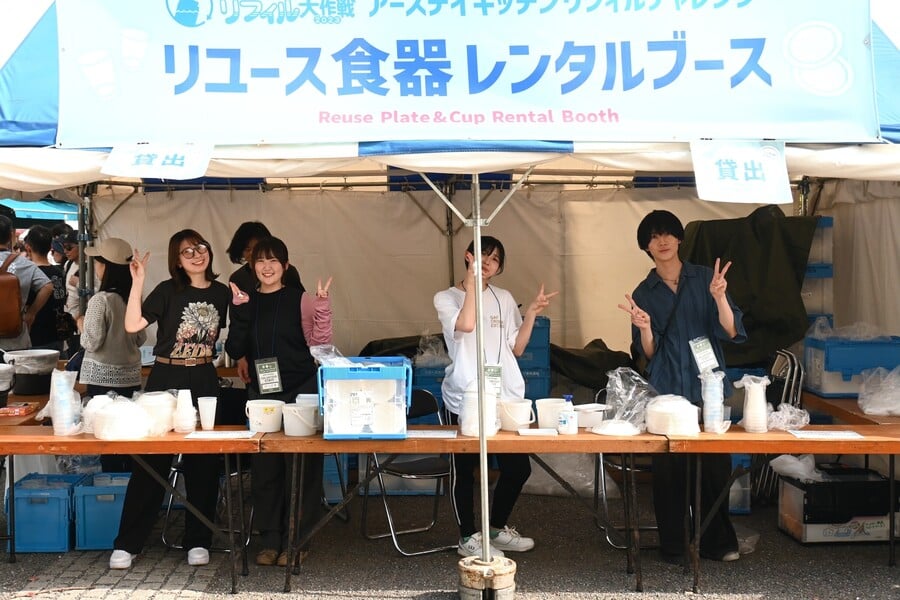 マイ食器やマイボトルを持ってこれなかった来場者に対して、洗って何度でも使用できるリユース食器の仕組みの運営をします。ボランティアスタッフは、来場者からリユース食器の返却の受付、そしてPRの活動を行います。
