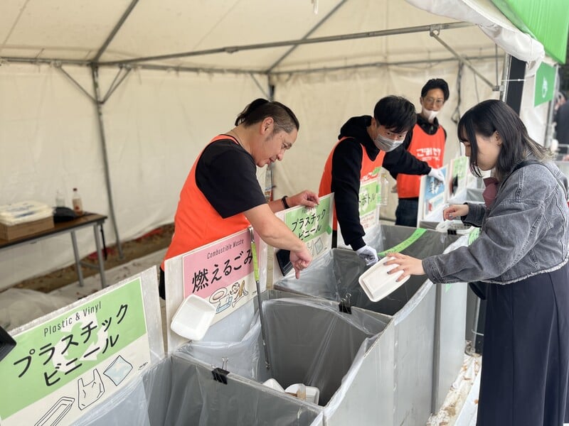 来場者が自分の手でごみ資源を分別できるようにする "ごみ資源の分別ナビゲート" や、ごみの根本削減に取り組む "リユースカップ・食器"の導入など、イベントの環境負荷を下げるための活動をボランティアと一緒に運営しています。