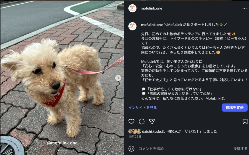 Mofulinkではお散歩を希望される方であればどなたでもご依頼いただけます。 |