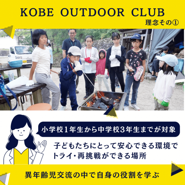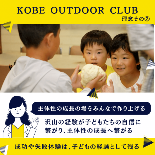 近年、インターネットの復旧や電子機器の向上・また塾や習い事などの増加により子ども達の体験する機会が減っています。『体験』は成功体験を提供するだけではなく、失敗体験も含めての体験と考え成功も失敗も経験として次に生かしていく。そしてそれぞれの日々の生活と私たちが提供するKobe Outdoor Clubの活動が合わさり日常の生活へ戻っていく。この繰り返しが子ども達の心と体の成長に繋がっていくと考え提供しています。