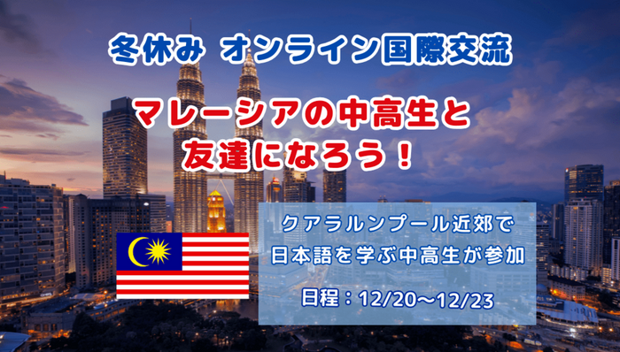 - 【中高生対象:12/20〜23】マレーシアで日本語を学ぶ中高生と友達になろう!