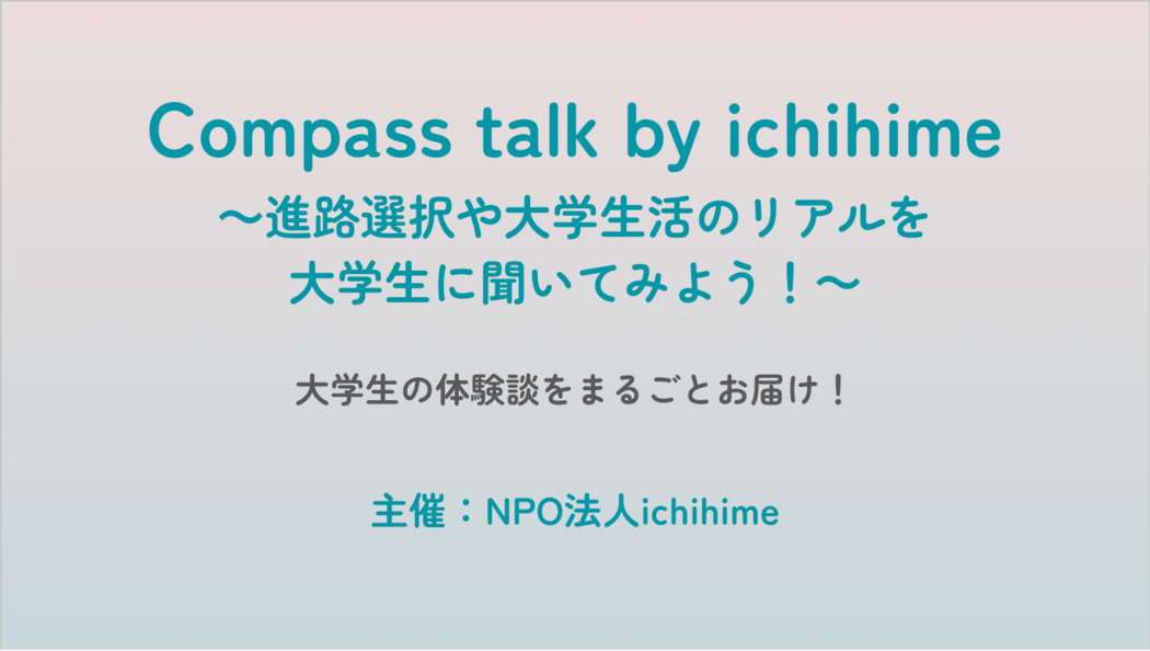 女子中高生向けオンライン座談会「大学生に聞く!私の進路選択history (Compass Talk)」を開催。22名の女子中高生が参加し、大学生と文理選択や大学生活のリアルについて語り合う場を提供