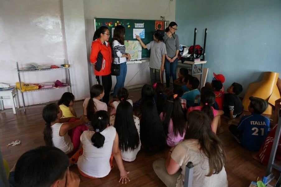 首都郊外にあり、国立児童養護施設の子ども達が多く通う学校で中高生に歌やゲーム等も混ぜながら、英語を教える。