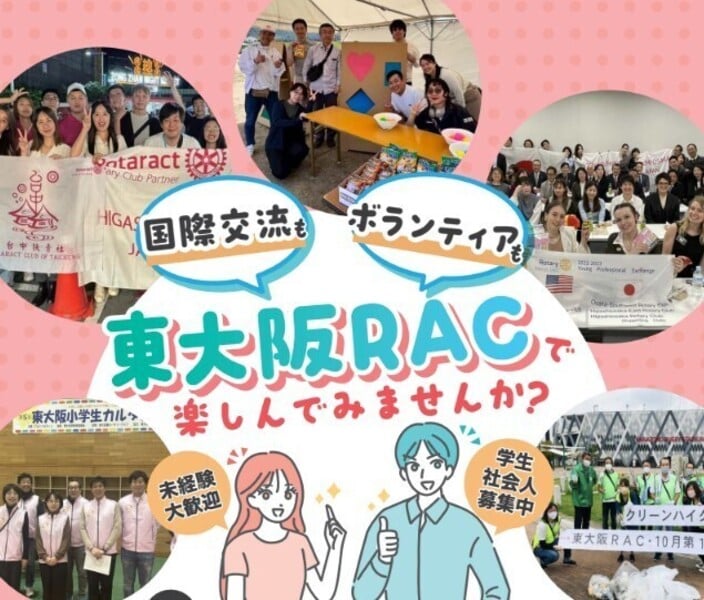 東大阪ローターアクトクラブでは、18〜32歳の学生や社会人が集まって、地域ボランティアやイベント、海外交流などの活動を月2回開催しています。上下関係もなく、初めてでもすぐ馴染めるフラットな雰囲気です!