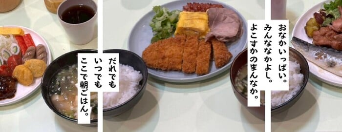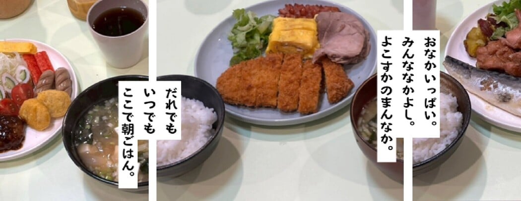朝・昼・夜の食堂でごはんを食べ、誰かと話し、安心して座っていられる時間。