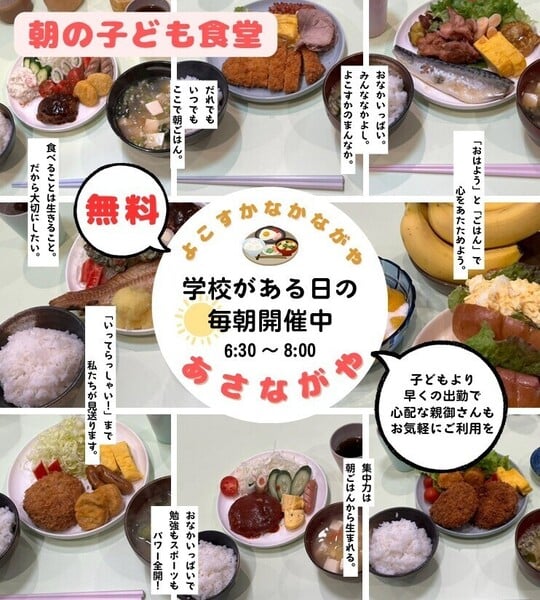 子どもたちに温かい朝ごはんと安心の時間を届ける「あさながや」🌞月〜金の朝6:00〜8:30頃に、子ども達の朝食づくりや見守りをお手伝いしてくださるボランティアさんを募集しています🍙✨