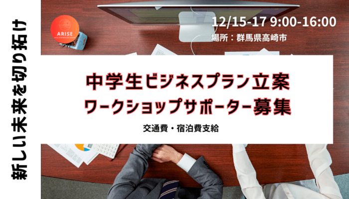 - 高崎市の中学校ビジネスプラン立案ワークショップのサポーター募集