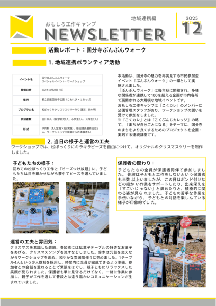 2011年に復興支援活動を埼玉県に避難する双葉町の子ども向けに「双葉の子どもと遊ぼう」ボランティアを発足、1年間活動