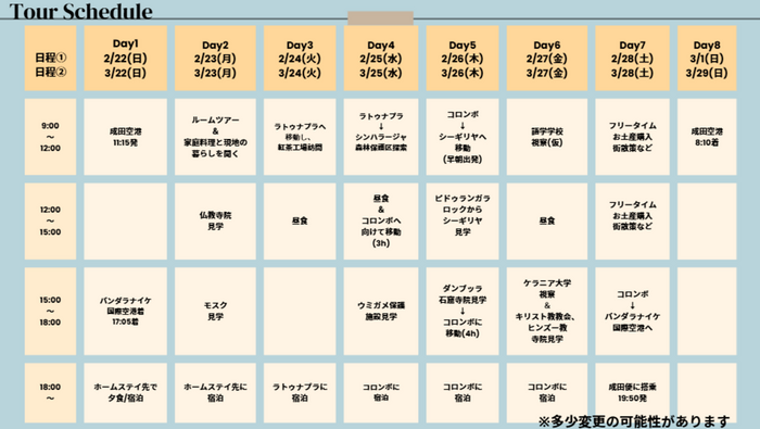 ※また、ツアーとは別途で弊社の無料のオンライン英語学習プログラム「GOAL」にもご参加いただけます。詳細は説明会にてお伝えします。