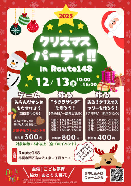- 1日体験!こどもクリスマスパーティ会の見守りボランティア募集!