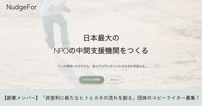 - 【NudgeFor】社会に“新しいお金と人の流れ”を生み出すファンドレイザー募集