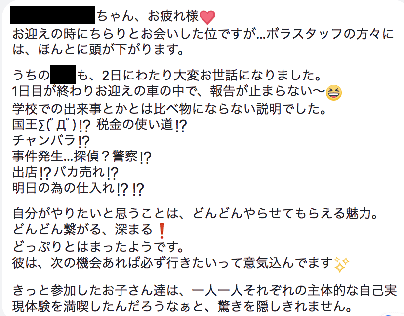 ●自分はやりたいことがあっても一歩踏み出せずにいて、でも子ども達がどんどん自分のやりたいことに挑戦していく姿を見て、「自分も!」と刺激をもらえました