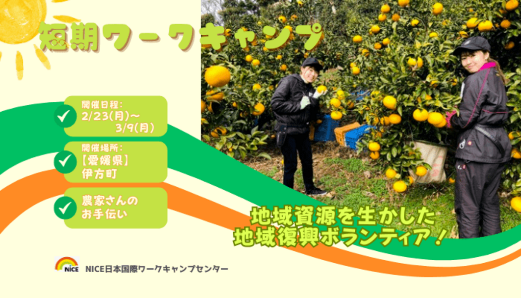 伊方町は日本でも有数のかんきつ類の産地であるが、過疎化、高齢化、後継者不足の問題が深刻で、作り手のないみかん畑も見え始めてきた。一度荒れた畑は、再生が非常に困難である。年間を通し、国内外からの中長期ボランティア達が農作業の手伝いやイベントに参加し、活躍。彼らの活動により、地域住民の喜久家に対する活動への理解は広がってきている。より多くの住民に村の活性化の重要性や村のすばらしさを再発見してもらえる機会にしたいと思い、ワークキャンプを開催。