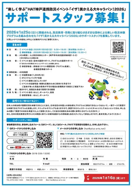 - HAT神戸連携防災イベント「イザ!美かえる大キャラバン!2026」スタッフ募集!