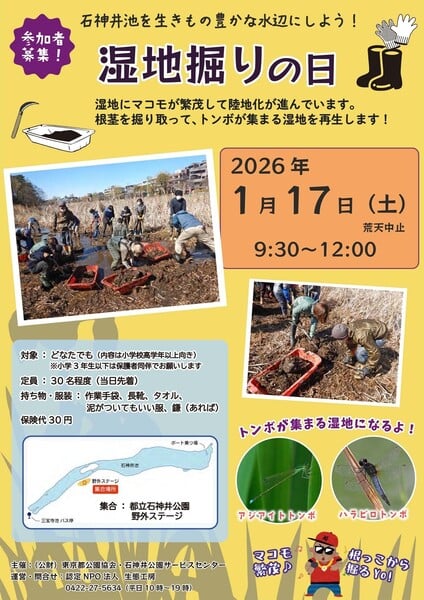 - 石神井公園 石神井池を生きもの豊かな水辺にしよう! 湿地掘りの日