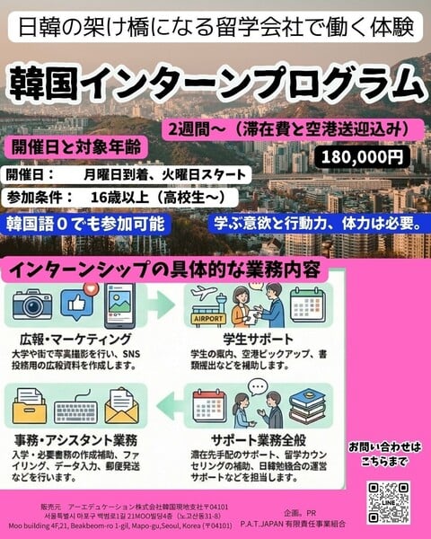 - 現地の働く現場に飛び込んでみる?韓国好きを将来意味がある経験に変えませんか?
