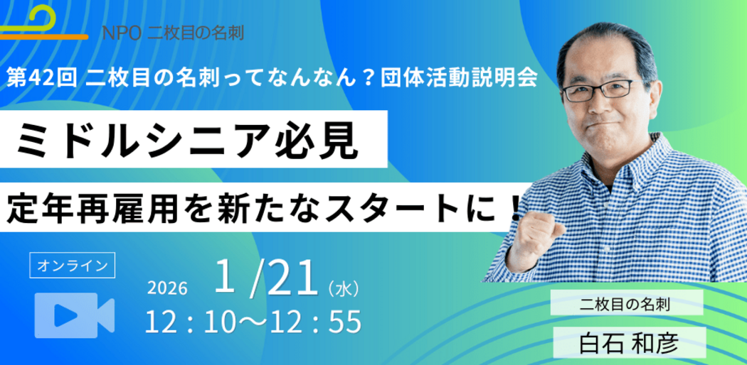 - 第42回 NPO二枚目の名刺活動説明会 ~定年再雇用を「新たなスタート」に~