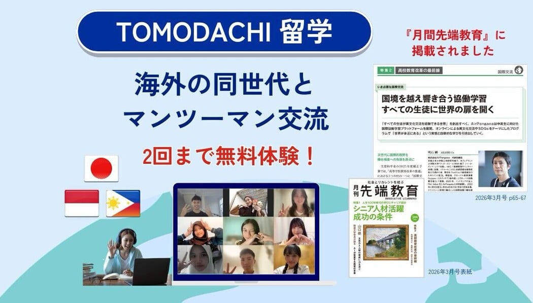 - 【新中1〜高1:無料体験】海外の同世代と毎週マンツーマンで話すオンライン留学