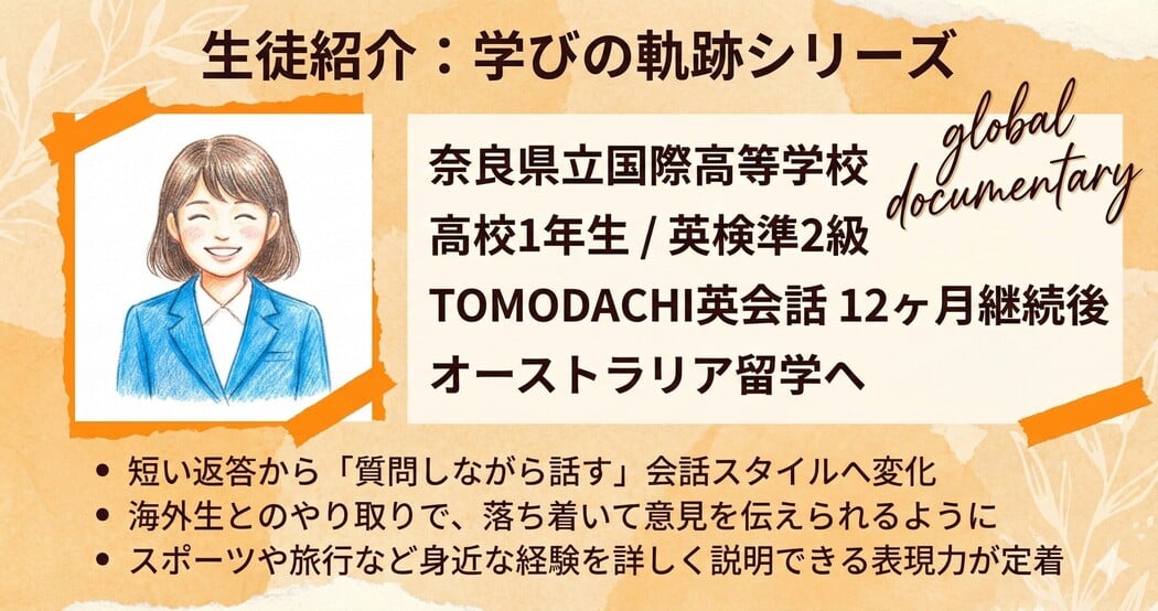 高1女子 英検準2級 (奈良国際)「他国の同世代の友達が出来たことによって自分に自信がつき、勉強のモチベーションにもなりました。日本とインドネシアの文化の違いも感じられて毎回楽しく参加できています。」🔹🔹この生徒様は、その後海外留学を志望し、オーストラリア留学を実現されました🔹🔹