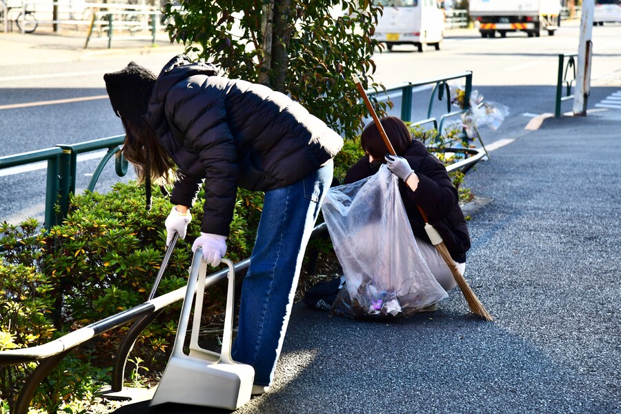 三連休の初日、柔らかな光の中での清掃活動。
