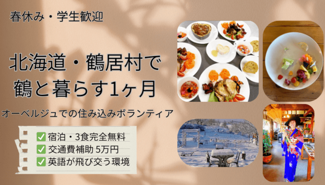 - 北海道鶴居村で住み込み!3食宿付+謝礼5万円。英語環境の農家レストランで生活体験