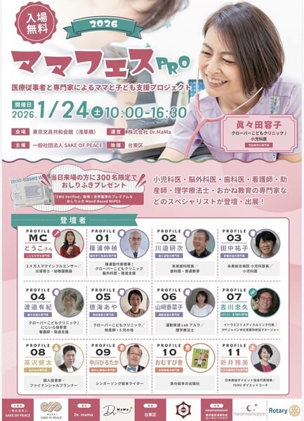 1/24(土)浅草橋で開催!小児科医や脳外科医、歯科医など、豪華専門家が集結する「ママフェスPRO」を支える仲間を募集中。ママをサポートしていきたい方、医療・保育関係の方、一緒に盛り上げましょう!