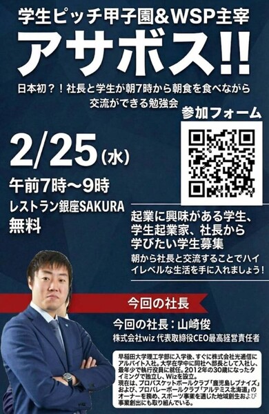 - [無料]あの大社長を囲んで朝ごはんを食べよう!「アサボス!」