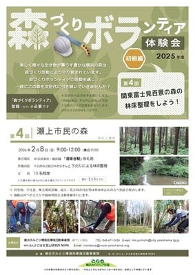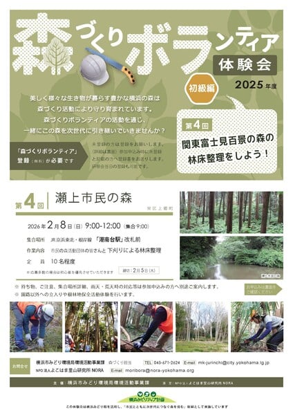 | 現地団体 | 瀬上さとやまもりの会(現地団体) よこはま里山研究所NORA(事業受託) 横浜市みどり環境局環境活動事業課(主催) |