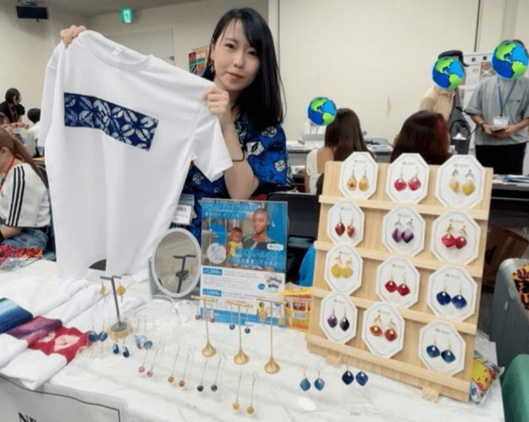 NPO法人アラジでは、西アフリカ・シエラレオネの伝統布Gara布を使用したアクセサリーブランド「Sierra Grace」を運営、ブースでの売上を国際協力に役立てています!