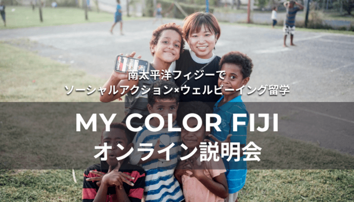 フィジーで「英語×異文化体験」を組み合わせた2週間の短期留学プログラム「MY COLOR FIJI」のオンライン説明会です。