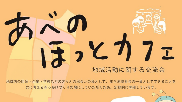 阿倍野区内の地域活動協議会と、地域で活動する企業・団体・学校など様々なスキルやネットワークを持つ方々との出会いの場として「あべのほっとカフェ」を開催いたします。