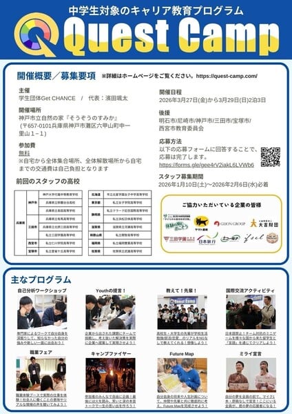 - 「Quest Camp 2026 in 神戸」高校生ボランティアスタッフ募集!