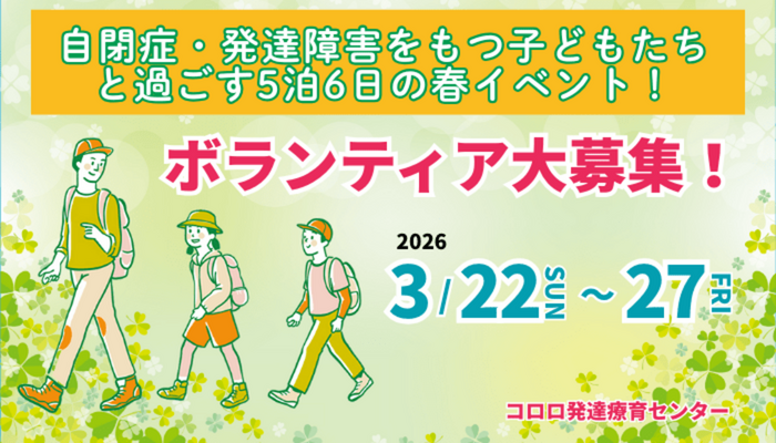 - 【18歳以上】自閉症・発達障害児の5泊6日の宿泊行事サポートボランティア募集!