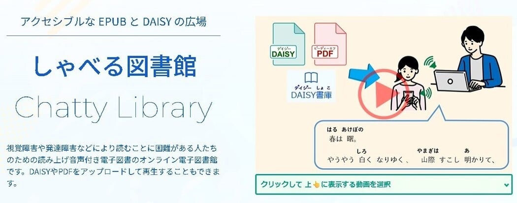 ディスレクシアなど学習障害により読むことに困難がある人達のためのフリーサイトしゃべる図書館ChattyLibraryの運営もしています。