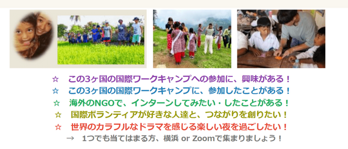 * 勿論、ご質問も受け付けます。受入NGOの職員も登場するかも!