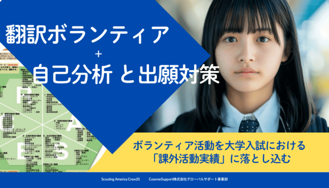 - 3/29(日)「翻訳ボランティア」+「自己評価シート」+「調査書・出願」対策