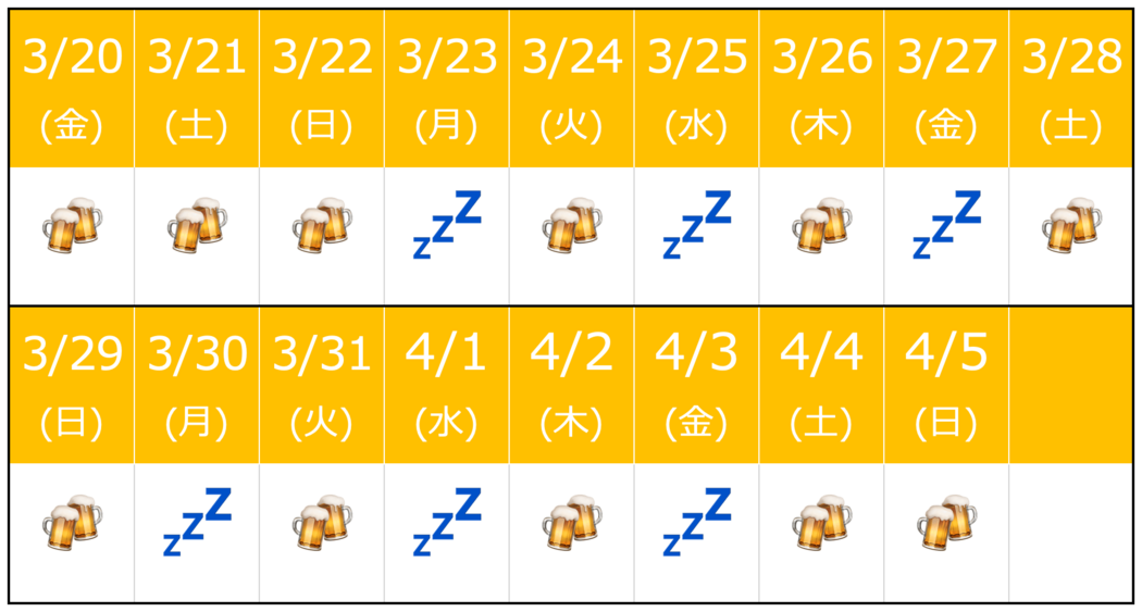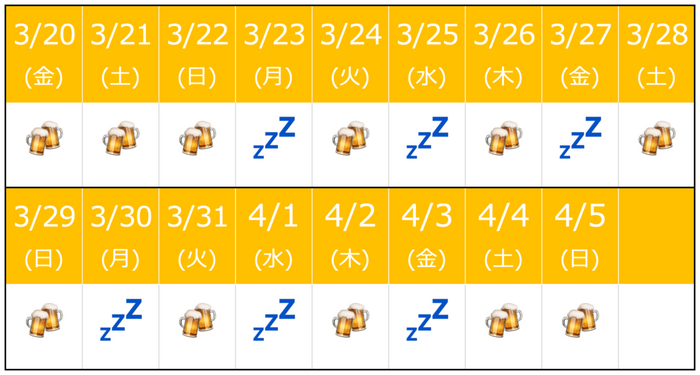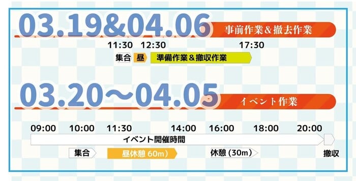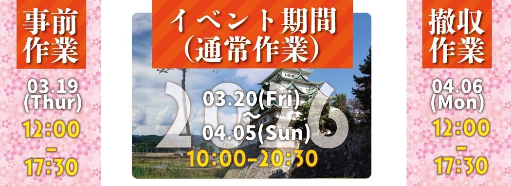 ※3/19(木)4/6(月)は事前準備と撤収作業となります。 11:30~17:30
