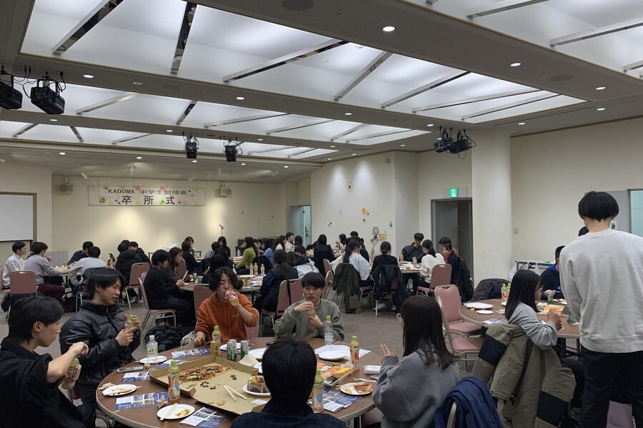 KADOMA中学生勉強会では、単なる学習の場だけでなく居場所的視点も重視しながら、特に「大学」「大学生」という身近なモデルを生徒たちに見せてあげたい、決して先生と生徒のような上下の関係ではなく「ナナメの関係」で接することによって生徒たちの「居場所」にもなるよう心掛け活動をしています。そのため勉強会では、大学生と生徒たちとが学習だけでなく様々な会話をしており、遠足や大学見学、クリスマス会、卒所式などイベントも用意をしています。その理念に多くの大学生が賛同をしてくれ、2024年度は毎回15名前後の大学生が参加をしてくれました。