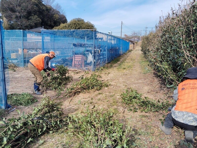参加者さんは全員よいおやさいのビブスを着て作業します。参加メンバーがわかる上に道路などからも活動していることがわかり、一体感が生まれます。