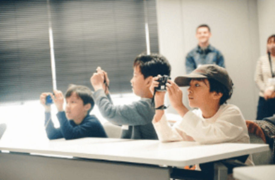 ワークショップでは子供たちが光と影や構図など、写真撮影の基礎やカメラの使い方のレクチャー後に、本格的なミラーレスカメラを使用してコンクールのテーマ「際(きわ)、周縁(しゅうえん)」に合わせた写真を撮影します。