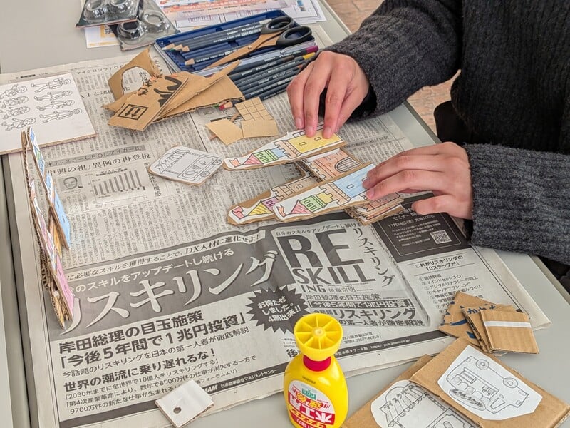 おもしろ工作キャンプは、立川市にて高校生8名を対象に、大学生・社会人がサポートす る探究型職業体験を実証実験しました。本プログラムは、経済産業省の提唱する「社会人基礎力」の育成と自己理解の深化を目的としています。会社に出向かなくても参加できるまちなか職業体験です。