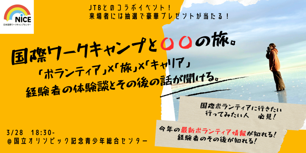 - 【3/28土】国際ワークキャンプと〇〇の旅。 経験者の体験談とその後が聞ける。