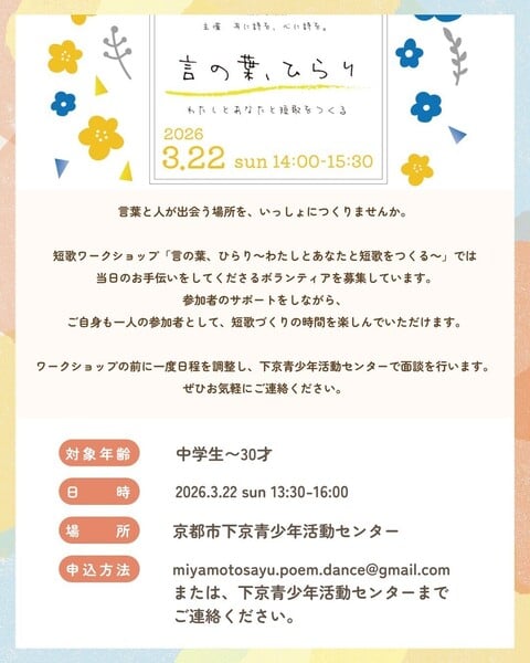 - 3/22・単発「詩のワークショップお手伝いボランティア」