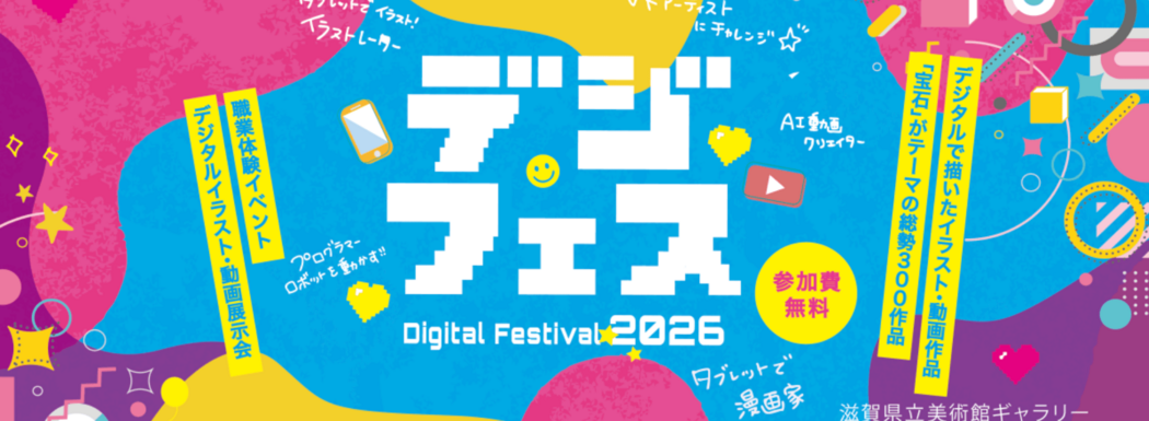 滋賀県立美術館で子どもたちのデジタルイラスト展示と体験型イベントを開催。イラスト・映像作品などの展示と、デジタルイラスト・AI動画・VR体験などができるデジタル教育イベントの受付スタッフを募集します!