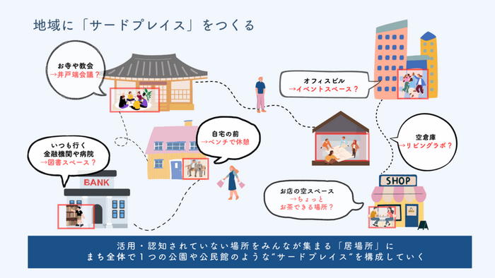 小さな出会いや交流を積み重ねながら、まちそのものが居場所になっていく風景を育てていくことを目指しています。